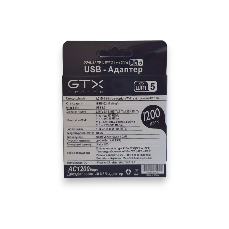 Wi-Fi USB-адаптер GTX-AC1200 — зручне рішення для швидкого та стабільного бездротового підключення до інтернету вдома або в офісі.
