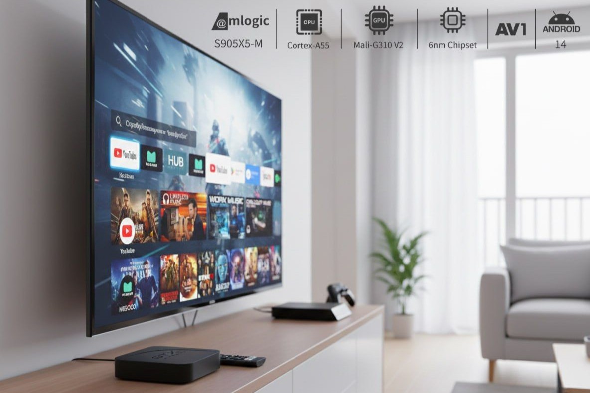 - Процесор: Amlogic S905X5M ARM Cortex-A55