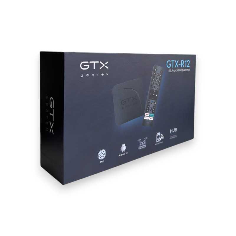 GTX-R12 підтримує відтворення відео у форматі 4K Ultra HD (3840×2160) та перетворює ваш телевізор на сучасний Smart TV з доступом до улюбленого контенту на YouTube, IPTV, онлайн-кінотеатрах, ігор та стрімінгових сервісів.